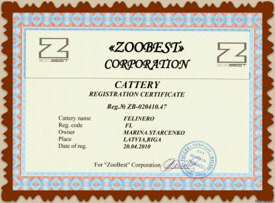 Питомник зарегистрирован во всемирной организации кошек WCF,